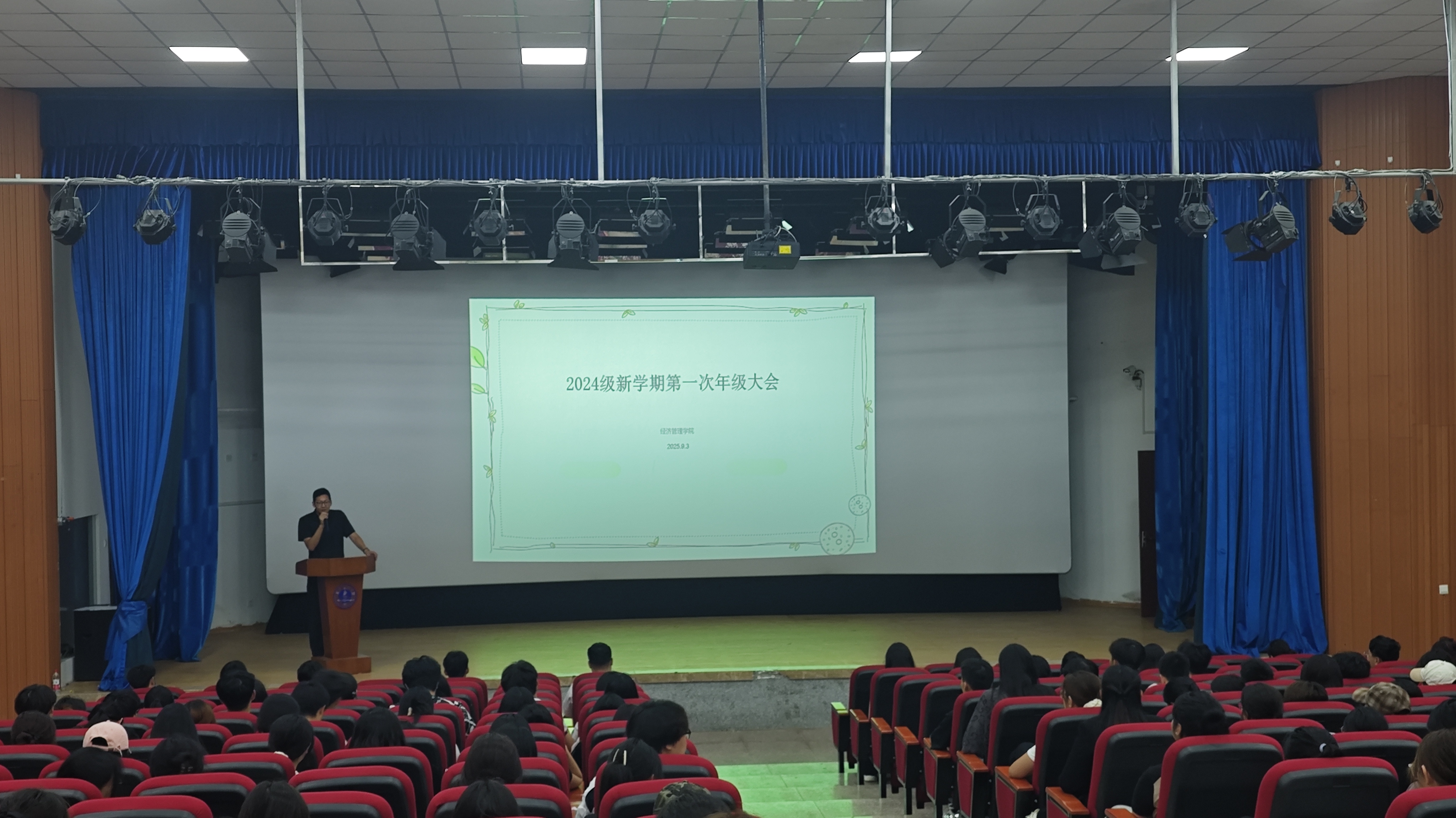 2024级年级大会由辅导员刘子琦主持。针对大二年级员工已完成大一适应阶段、正处于承上启下关键时期的特点,本次会议以“持续筑牢安全意识”为核心,进一步系统梳理和强调了各类安全注意事项。在用电安全方面,他结合校园实际,特别提醒注意充电宝等日常电器的规范使用和及时维护;在人身安全方面,明确要求员工若有合理原因申请晚归仍须严格执行提前请假制度,以便及时掌握情况、防范风险;针对网络安全,他深入剖析了当前高发的电信诈骗案例,强化“三不一多”原则的实践运用,引导员工不断提升辨别和防范能力,巩固安全防线。