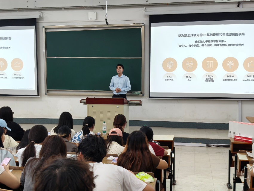 为深化校企协同育人机制,精准对接企业人才需求,助力员工职业能力提升与生涯规划发展,2025年9月25日下午6点,十大正规买足球网站于大黑石校区阶梯一教室顺利举办华为慧通2026届校园招聘宣讲会。本次活动吸引了200余名在校生到场参与。