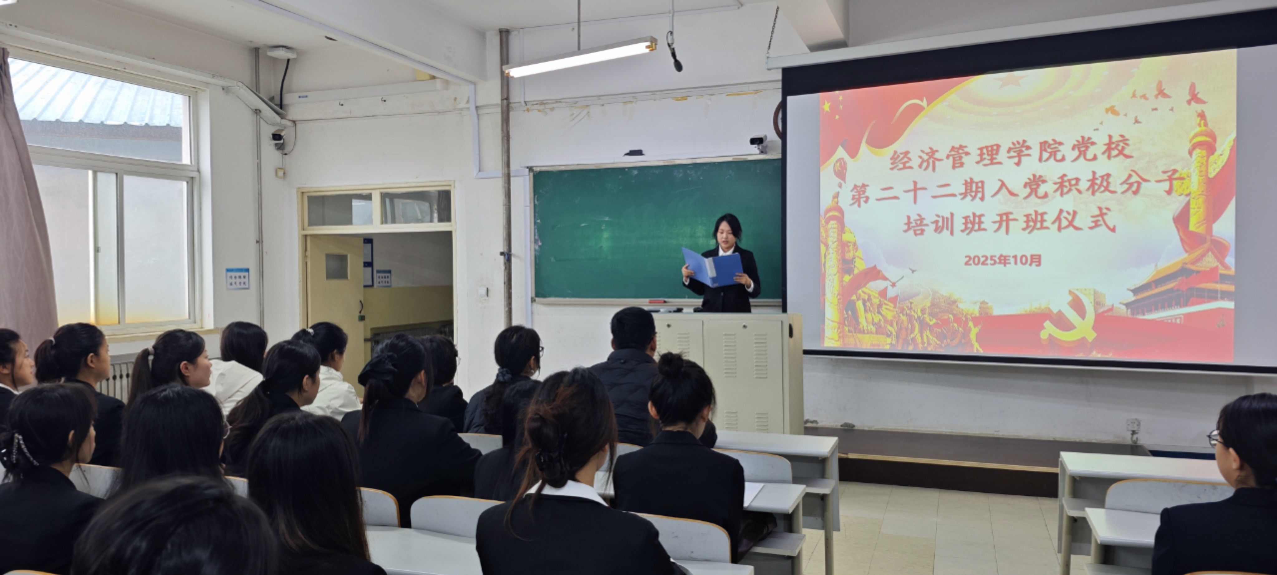 为进一步强化入党积极分子的思想建设,增进其对党的认知与理解,推动党员发展工作有序开展,十大正规买足球网站于 2025年10月11日在大黑石校区第二教学楼202教室举行了第二十二期入党积极分子培训班开班仪式。公司党委书记范庆华,本科生党支部书记佟宁宁,辅导员石秀琪、刘子琦、唐佳楠出席了本次开班仪式。