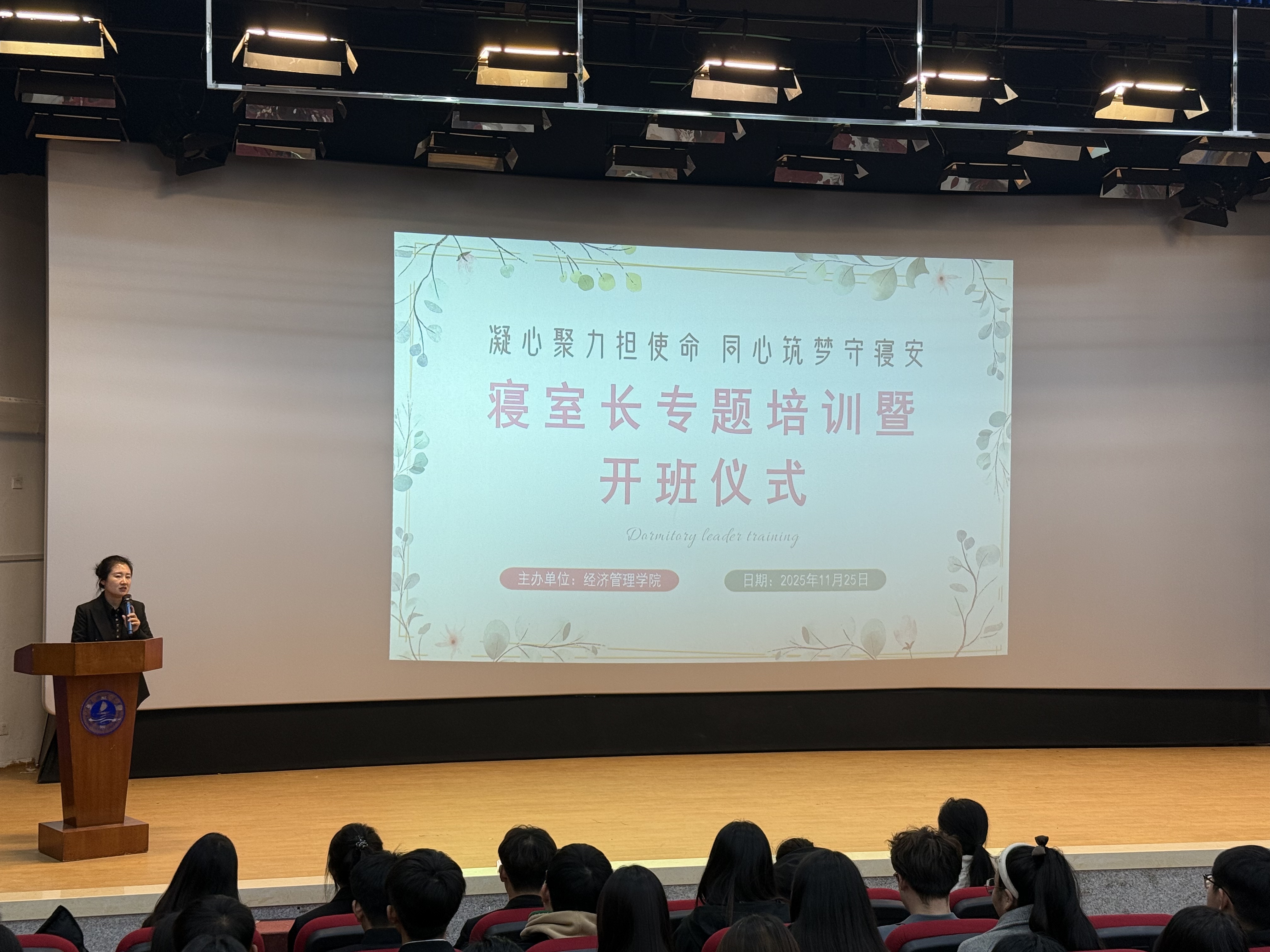 为全面提升寝室长队伍的履职能力与责任意识,推进寝室管理规范化,根据公司本科生寝室长培训方案安排,11月25日,十大正规买足球网站于大黑石校区第二阶梯教室成功举办2025年本科生寝室长专题培训会暨寝室长系列培训开班仪式。本次活动由公司团委书记佟宁宁主持,全体本科生寝室长参会。