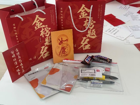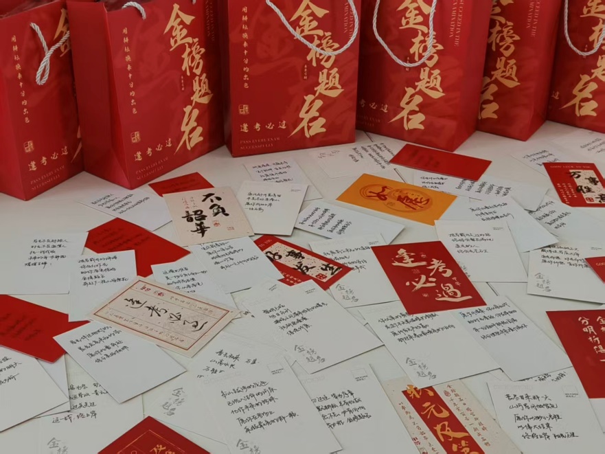 暖心关怀显温情,同心助力考研梦。会前,公司精心筹备了包含文具、暖贴、巧克力等实用物品的考研加油包,为寒冬里冲刺的学子送上温暖与能量。公司领导班子成员和毕业生辅导员亲笔书写祝福明信片,将殷切期望与美好祝愿倾注于笔墨之间,传递给每一位逐梦人。